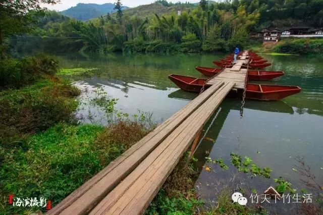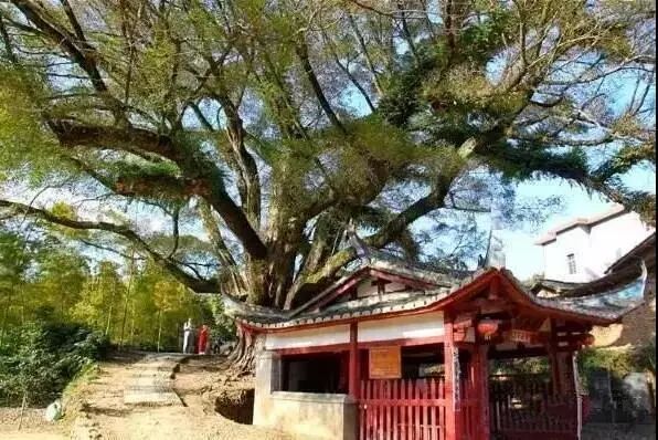 来到吉山村,走不一会儿就可以见到一棵有数百年树龄的古榕树,古榕盘根错节,根基庞大,枝繁叶茂,错落有致,伸出无数枝桠,像一把参天巨伞,罩在渡头上空。古榕前面是一座由十二只铁船连成的浮桥,浮桥原是由木船相连而成,后来改为铁船。