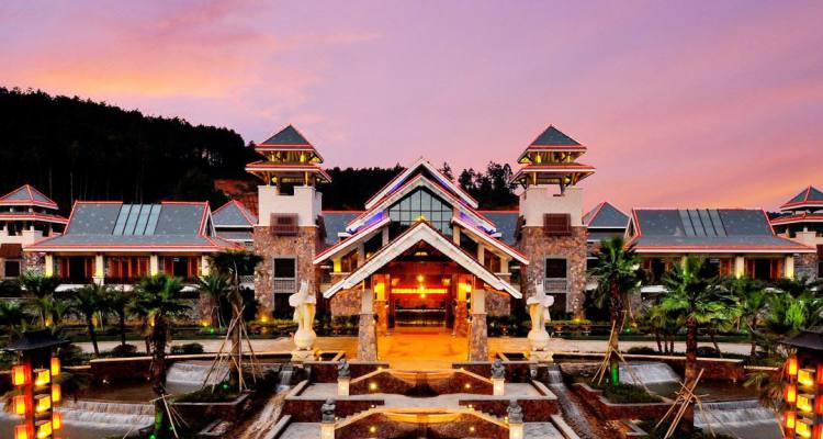客房空间宽敞,古色古香的设计让心平静,浴室中有大大的木桶引入温泉水,让人舒心泡汤。坐在阳台上喝一杯茶,满眼是青山翠缕。可容千余人的餐厅让你吃到闽、粤菜系及本帮菜。你还能在健身房运动、安静做一个SPA、全家一起卡拉ok,或是去网吧上上网。这里的地下温泉储水量丰富,有自涌泉眼12个,富含多种微量矿物质元素。大型温泉冲浪、儿童乐园、溶洞、温泉瀑布、特色养生泡池等,让你寄情山水,修身养性。