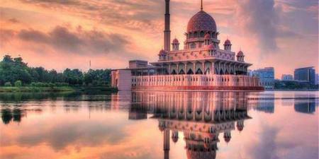 坐落在湖上的粉红色【水上清真寺】